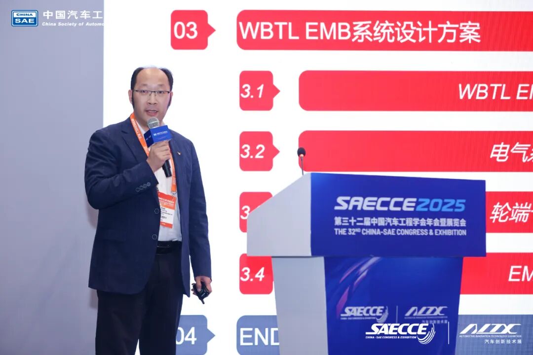 大會(huì)期間,伯特利基礎(chǔ)制動(dòng)總工李運(yùn)動(dòng)先生以“EMB技術(shù)方案及開發(fā)進(jìn)展情況”為主題分享了伯特利在機(jī)械式線控制動(dòng)領(lǐng)域的最新進(jìn)展。機(jī)械式線控制動(dòng)系統(tǒng)EMB,通過中央控制器CCU將接收到的電子制動(dòng)踏板信號(hào)傳遞至輪端WCU,通過WCU電機(jī)轉(zhuǎn)動(dòng)推動(dòng)活塞向前運(yùn)動(dòng),達(dá)到制動(dòng)目的。